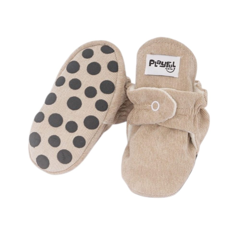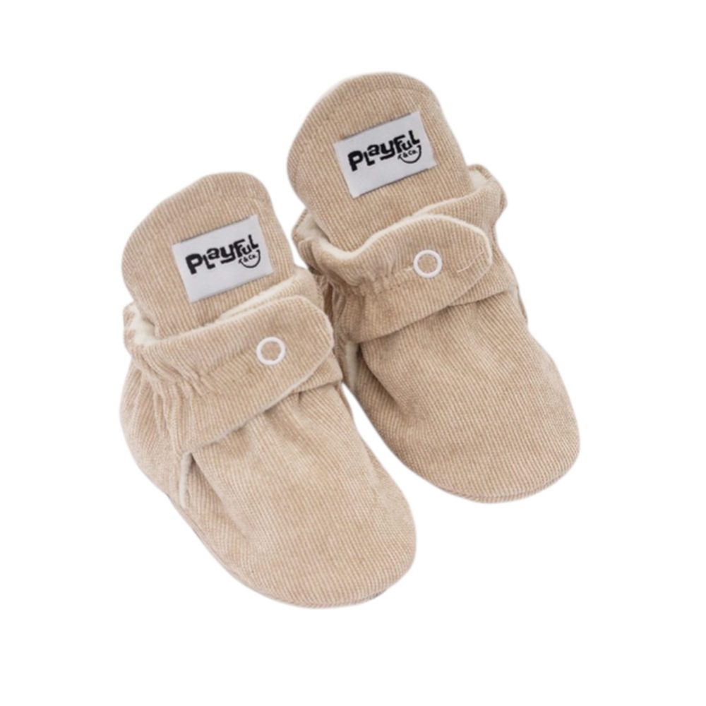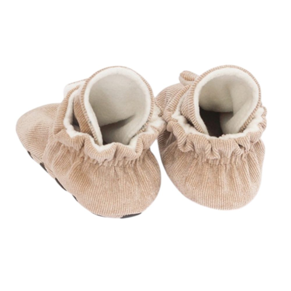 Estos zapatitos están confeccionados en tela corduroy que mantiene los pies de tu bebé abrigaditos y protegidos. Su diseño flexible permite el movimiento natural del pie, ideal para bebés en etapa de gateo o primeros pasos.