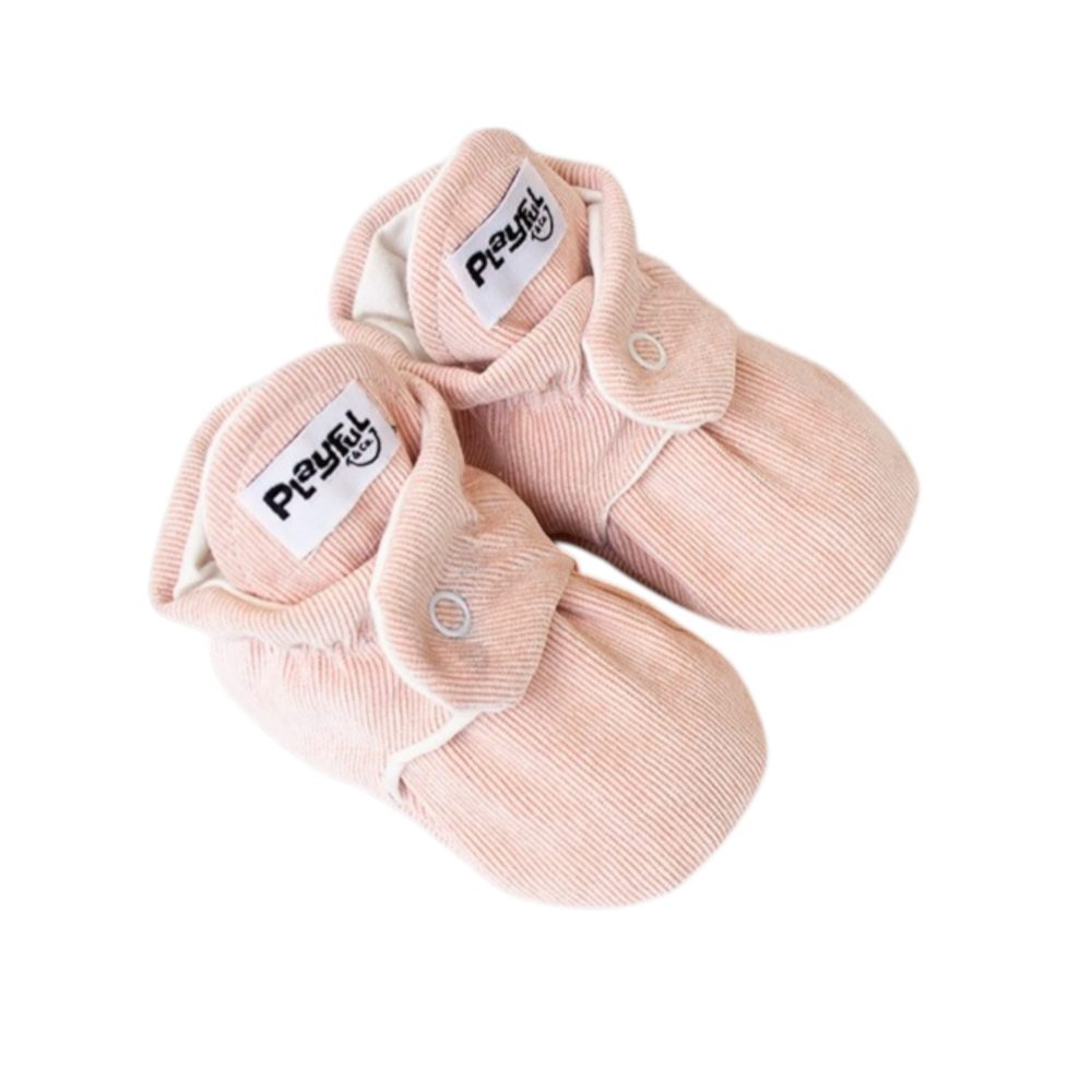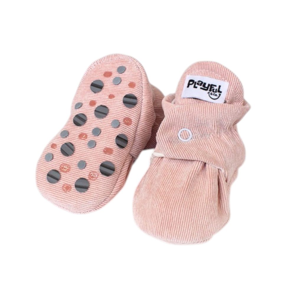 Estos zapatitos están confeccionados en tela corduroy que mantiene los pies de tu bebé abrigaditos y protegidos. Su diseño flexible permite el movimiento natural del pie, ideal para bebés en etapa de gateo o primeros pasos.